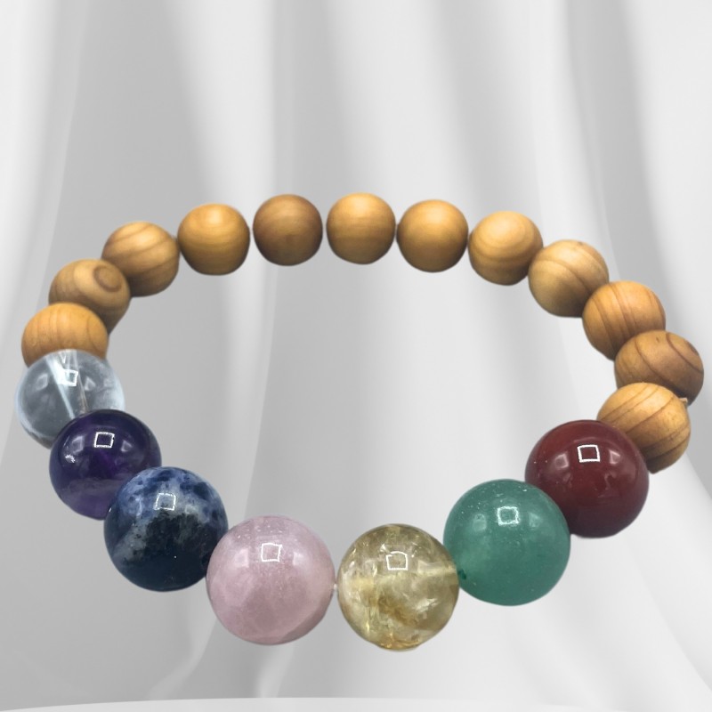 Es creu que les pedres precioses poden ajudar a equilibrar i energitzar els txakres. La polsera de fusta de cedre amb set txakres és una bella i poderosa peça de joieria que pot ajudar a promoure la salut física, mental i espiritual.