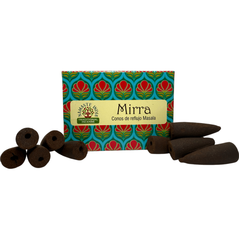 Discover the ancestral power of Myrrh with NAMASTE INDIAReflux Cones, handcrafted by the prestigious Indian manufacturer ORKAY, creator of the Namaste India brand, established in 1956.