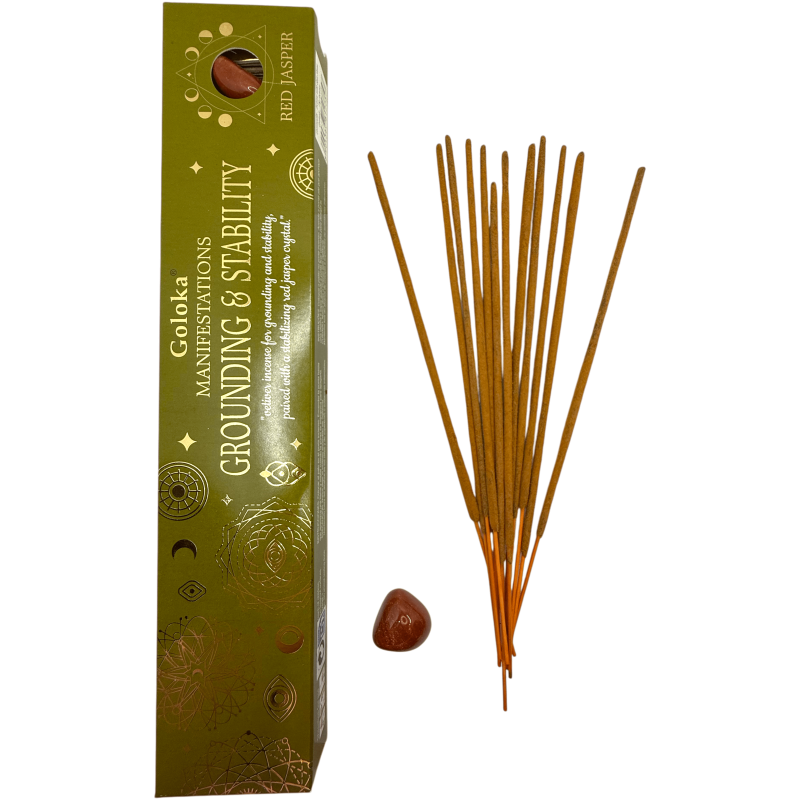 Incienso Goloka Manifestaciones Estabilidad y Aterrizaje – Incienso de Vetiver con Mineral de Jaspe Rojo (15gr)