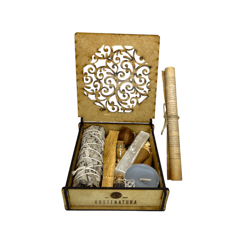 Energy Cleansing and Protection Kit in HOSTENATURA wooden box - Includes instructions and ritual - Natural and Ecological