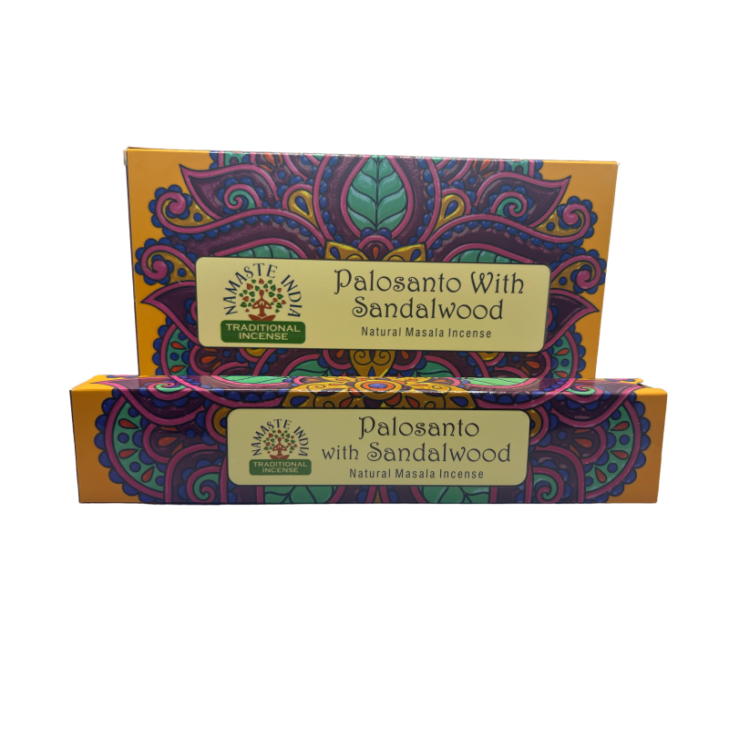 Scopri l'aroma autentico dell'India con l'incenso Namaste India Palo Santo con legno di sandalo.