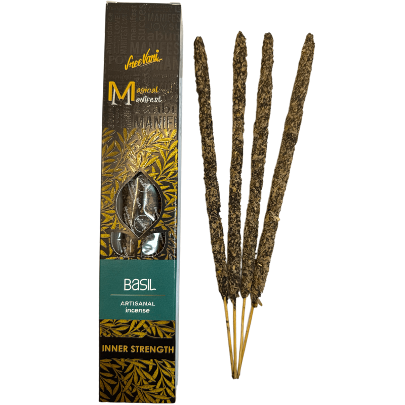 バジルインセンスインナーストレングスマニフェスト SREE VANI - ナチュラルアルチザンインセンス - 4本の太いバーエクストラクオリティ