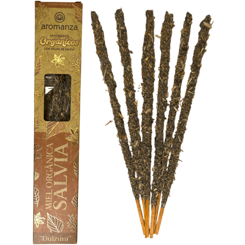 Organic Sahumerio Organiczny Miód i Szałwia z Liśćmi Szałwii Aromanza Argentyna - 6 naturalnych patyczków - Słodycz