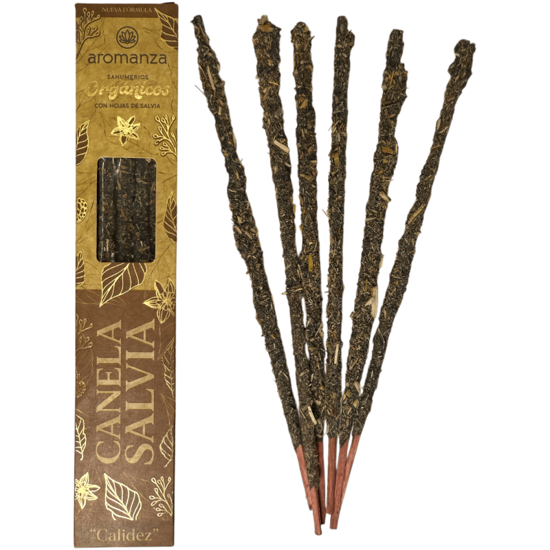 Wypełnij swoje przestrzenie ciepłą, przytulną i oczyszczającą energią dzięki otulającemu aromatowi organicznego kadzidła cynamonowego i szałwiowego prestiżowej argentyńskiej marki Aromanza, dostępnego wyłącznie w HOSTENATURA, sklepie internetowym numer jeden w branży kadzideł i kadzideł naturalnych w Europie.