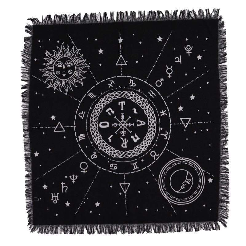 Obrus o wymiarach 50x50 cm łączy w sobie piękno, symbolikę i funkcjonalność. Wysokiej jakości konstrukcja z tkaniny i eleganckie ozdobne frędzle sprawiają, że jest idealnym uzupełnieniem każdego duchowego ołtarza, stołu tarota, medytacji czy rytuału energetycznego.