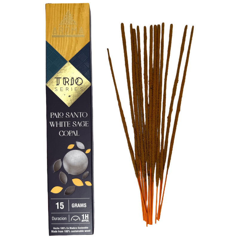 Kadzidło AROMA Trio Palo Santo, Biała Szałwia i Kopal – Oczyszczenie, Ochrona i Duchowe Uniesienie