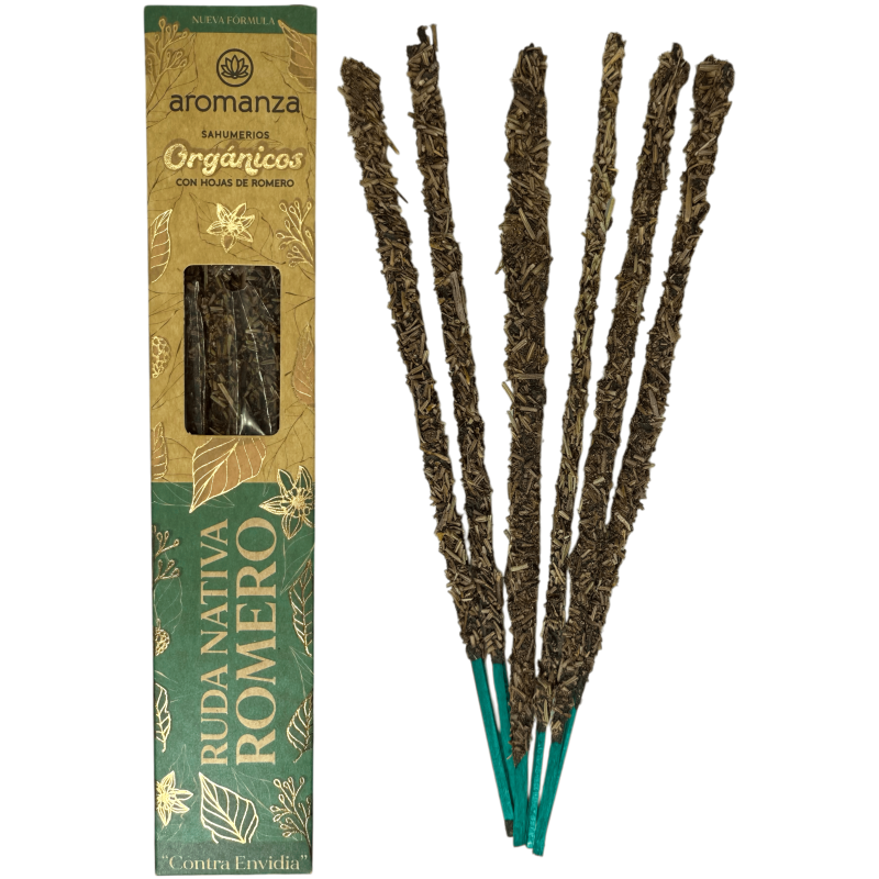 Skydda ditt utrymme och rena dåliga energier med den kraftfulla örtdoften av ekologisk vinruta och rosmarin från det prestigefyllda argentinska märket Aromanza, som endast finns på HOSTENATURA, den ledande onlinebutiken för rökelse och naturlig rökelse i Europa.