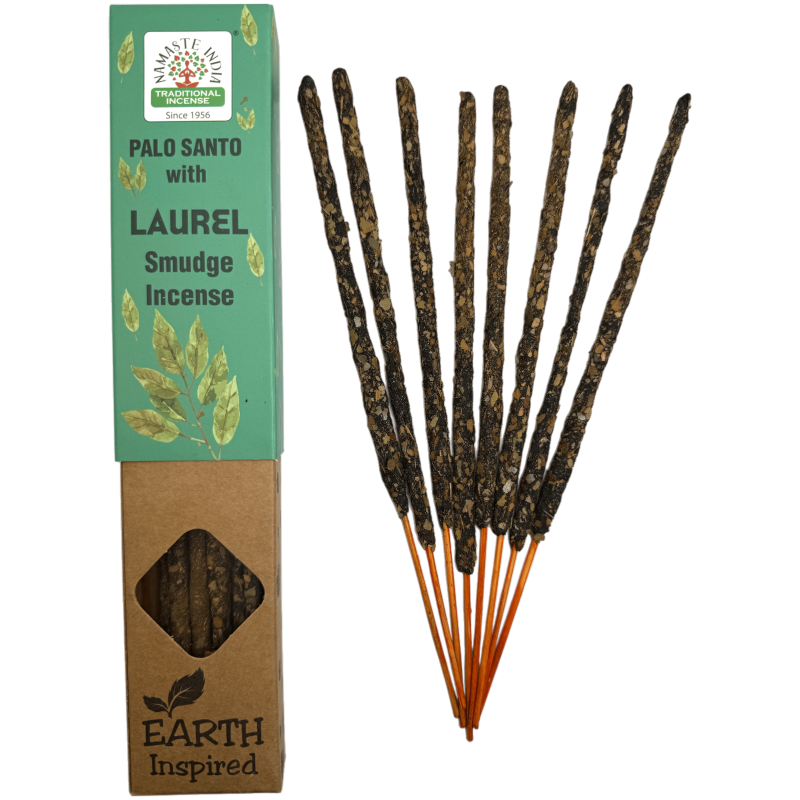 Naturlig Palo Santo och Laurel Rökelse NAMASTE INDIA Jordinspirerad - 25gr Låda med Ekologisk Rökelse