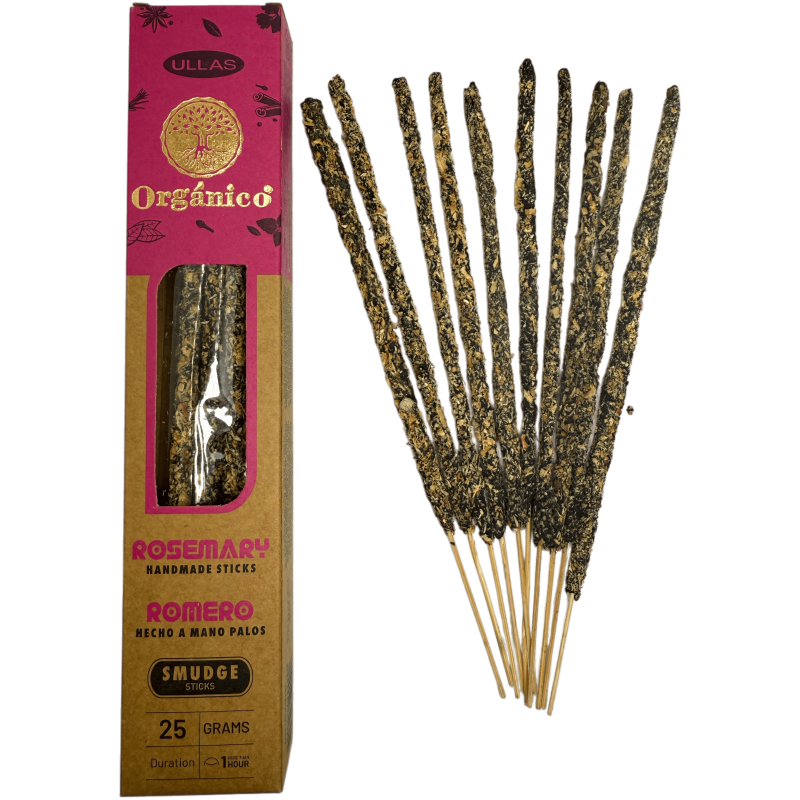 Rena ditt utrymme, höj din vibration och attrahera mental klarhet med rosmarinens uråldriga kraft, presenterad i sin renaste och mest aromatiska form med ULLAS ekologiska rosmarinrökelse. Denna handgjorda rökelse, tillverkad i Indien med 100 % naturliga ingredienser, är utformad för att ge dig en djupgående upplevelse av andlig rening och energisk förnyelse.